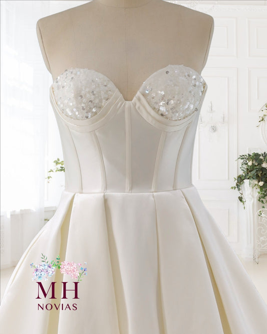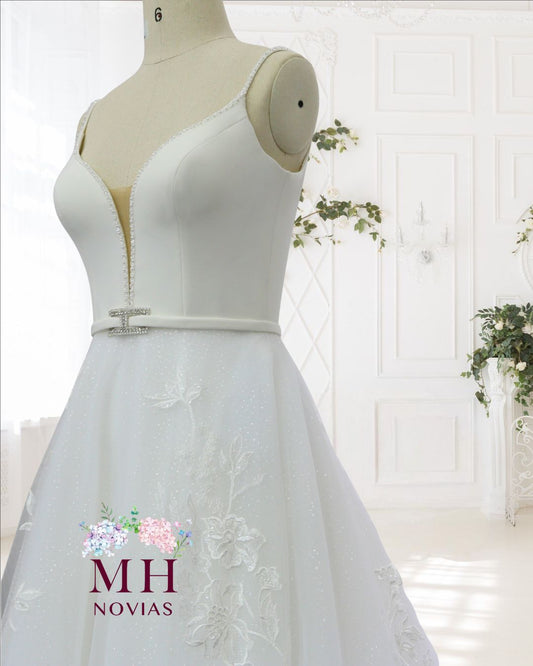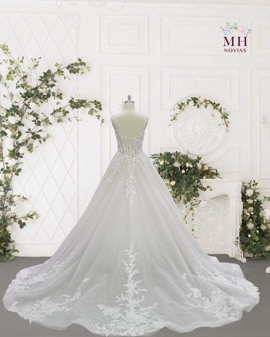 Esta es la línea de vestidos de novia más accesible, con precios que van desde los ¢400,000 a los ¢1,300,000 (referencia en USD de $800 a $2,600).